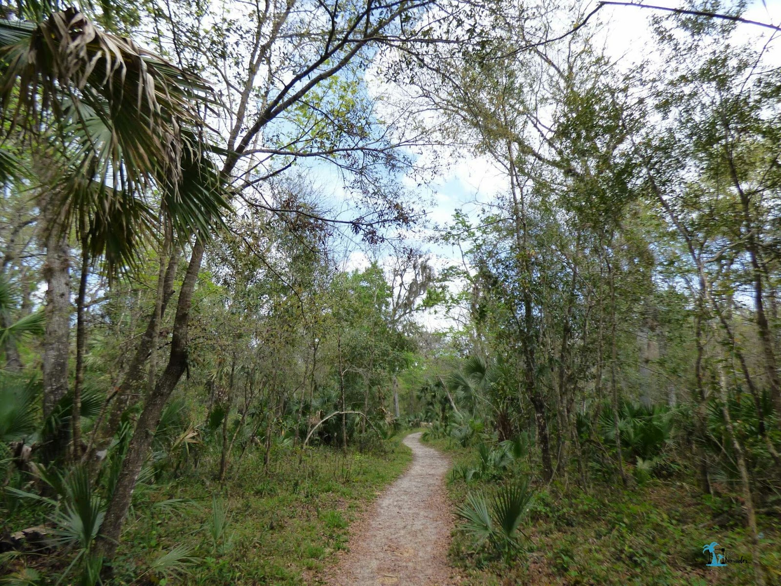 Le premier sentier qu'on a décidé de faire a été le North Shore Trailhead. Il faisait beau, il faisait chaud. La météo annonçait bien quelques averses en fin de journée, mais on avait le temps. AH! Est-ce que vous saviez que la météo change vite en Floride? Nous, on le savait. Mais nous nous sommes quant même fait prendre! Après plus de la moitié du sentier de fait, la pluie s'est mise à tomber. On avait remarqué les gros nuages gris, on avait remarqué que le ciel jaunissait. Bah, ce sera juste un peu de pluie. AH! Ben non... Nous sommes finalement retourné sur nos pas, mais il était trop tard. Il ne pleuvait pas : « Y mouillait assio ». Le tonnerre grondait, les éclairs bleuissaient le ciel. On était pris dans l'orage. Nul endroit pour s'abriter. On a bien essayé d'attendre sous un palmier, mais c'était évident qu'il nous fallait revenir au plus vite : On avait deux kilomètres à faire!